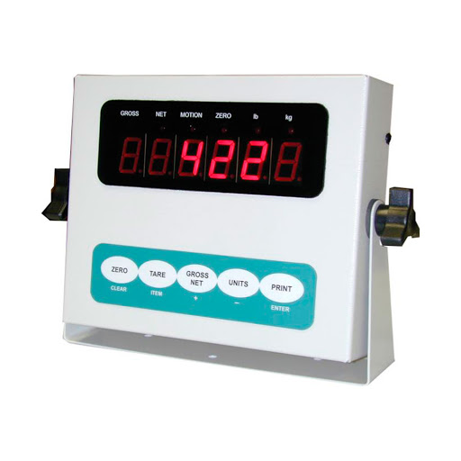 Indicador digital de peso fabricado en plástico ABS. Dimensiones: Pantalla LED de 6 dígitos (2 cm de alto). Teclado de funciones. Unidades de medida: Kilogramo (kg) y libras (lb). Comunicacion: Puerto RS232. Alimentacion: Cable de conexion directa a 120 VCA y batería recargable de 6V-4Ah (incluidos).